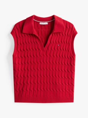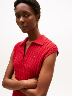 Dieser ärmellose Pullover bietet dank mittelschwerem Zopfstrick und offenem Polokragen einen aktuellen Look mit zeitlosem Flair.