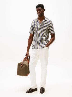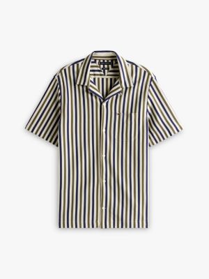 Dieses gestreifte Kurzarm-Hemd aus reiner Baumwolle erweitert deine Kollektion um eine einzigartige Struktur in Strick-Optik.