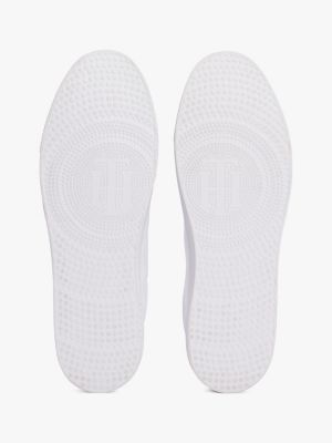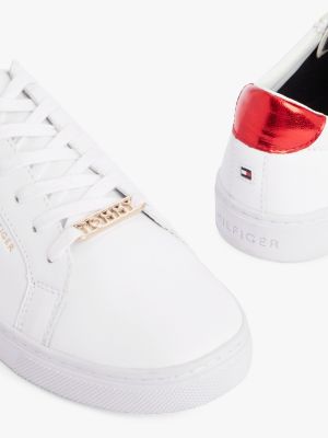 Ces baskets en cuir immaculées sont rehaussées d'un revers métallisé éclatant.