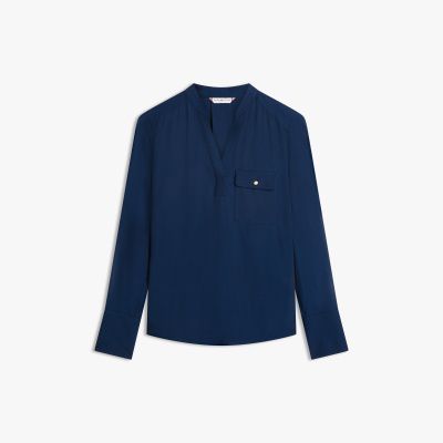 Un col en V sophistiqué et des fronces délicates aux poignets prêtent un esprit féminin à ce chemisier décontracté à boutons dorés.