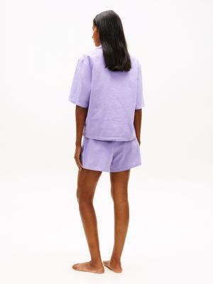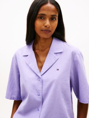 Lors des chaudes nuits d'été, optez pour ce pyjama léger en mélange de coton et de lin. Il se compose d'une chemise à manches courtes et d'un short assorti à cordon de serrage.