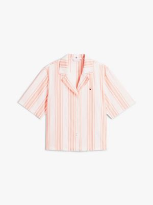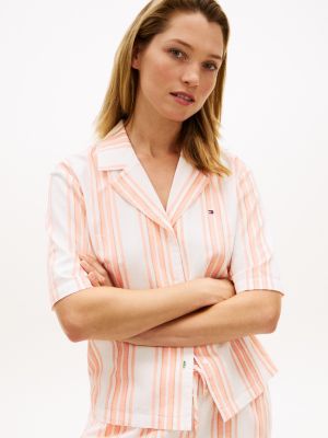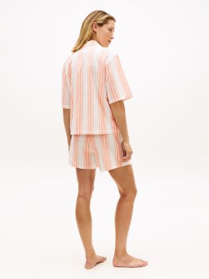 Cet ensemble de pyjama élégant se distingue par son allure classique. La chemise à col et le short assortis sont confectionnés en mélange de lin et de coton tissé.