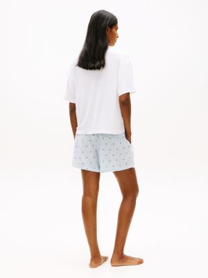 Restez élégante même au lit grâce à cet ensemble de pyjama composé d'un T-shirt à col ras-du-cou et d'un short à cordon de serrage, tous deux ornées d'un drapeau emblématique brodé.