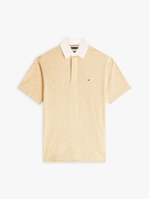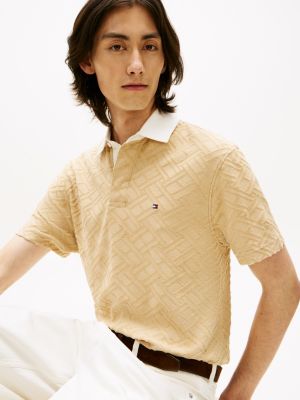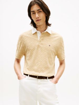 Ce polo en pur coton réveille les looks quotidiens grâce à son branding audacieux. Il s'habille d'un motif drapeau en jacquard ton sur ton.