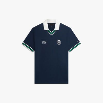 Adoptez le style country club avec ce polo. Il se distingue par un col en V et un blason TH chic brodé sur la poitrine.