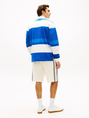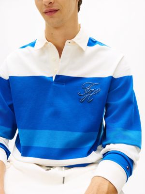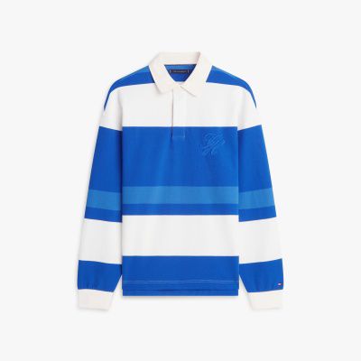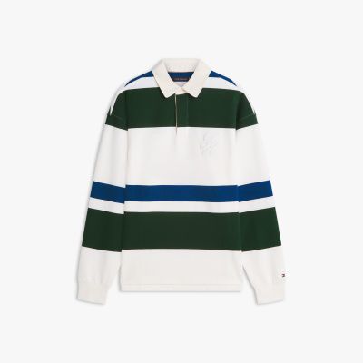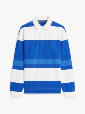 Ce polo à coupe décontractée présente un motif à rayures rugby et une broderie emblématique. Il vous permettra d'exprimer votre amour pour le sport en week-end.