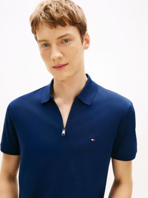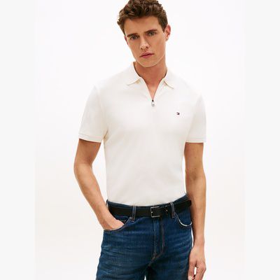 Ce polo coupe standard en maille interlock de pur coton est modernisé par une fermeture zippée.