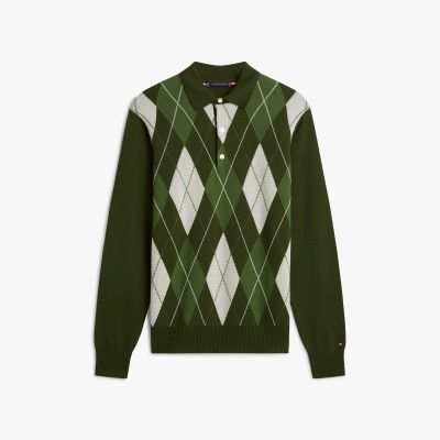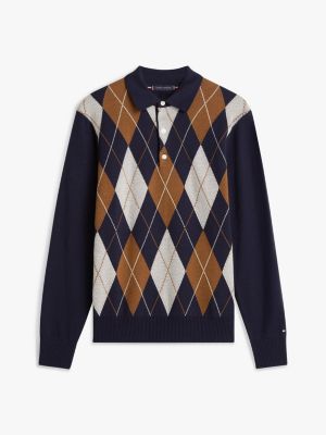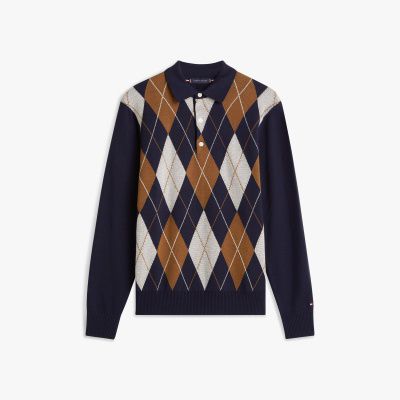 Ce pull à col rugby apportera une touche audacieuse aux tenues du quotidien. Il présente un motif Argyle classique à l'avant et aux épaules.