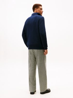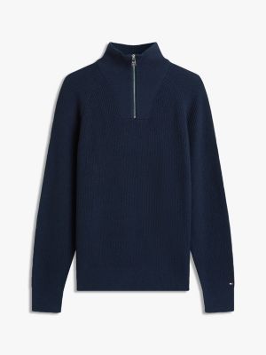 Doté de manches raglan, d'une demi-fermeture Éclair et d'un col cheminée, ce pull à côtes anglaises en coton mélangé confortable dessine une silhouette décontractée.