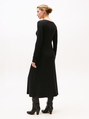 Une finition côtelée apporte de la texture et de la souplesse à cette robe mi-longue flatteuse. Elle présente une silhouette évasée.