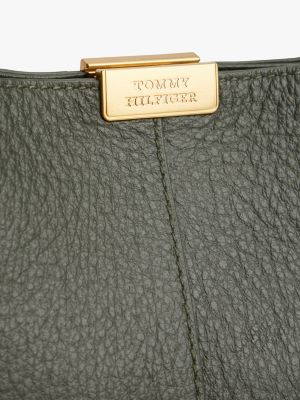 Ce sac porté épaule moderne et intemporel en cuir grainé luxueux est décoré de détails métalliques emblématiques.