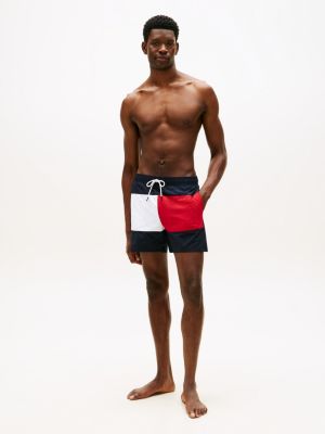 Adoptez un style rétro en vacances avec ce short de bain mi-long à motif colour-block emblématique.