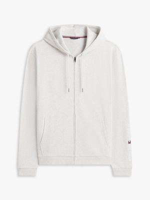 Ce sweat à capuche d'intérieur zippé en tissu éponge de coton mélangé offre un confort optimal lors des journées décontractées. Il est doté d'une poche kangourou fendue.