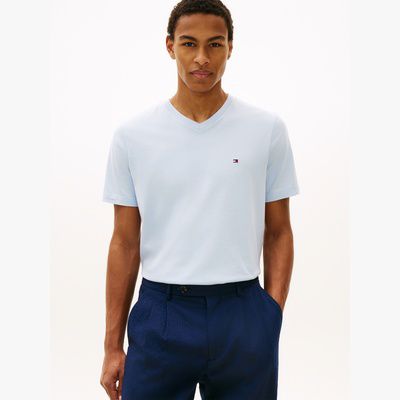 Composez vos tenues du quotidien autour de ce T-shirt en jersey de pur coton doté d'un col en V classique et d'un drapeau brodé.