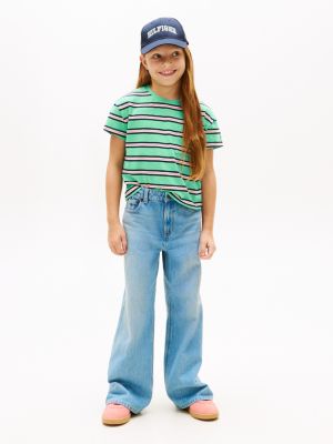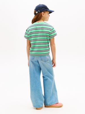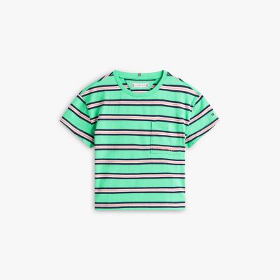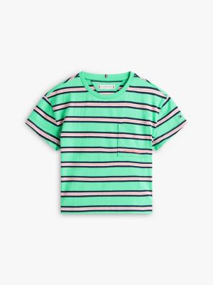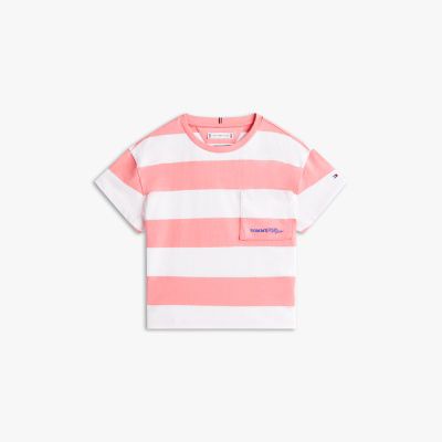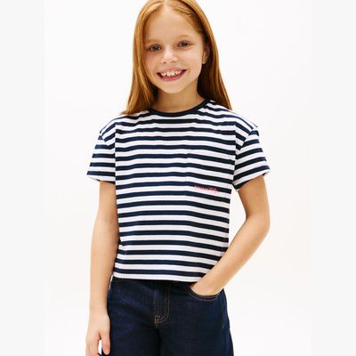 Ce T-shirt en jersey de pur coton est un classique. Il est orné de larges rayures horizontales et d'un logo brodé sur la poche poitrine.