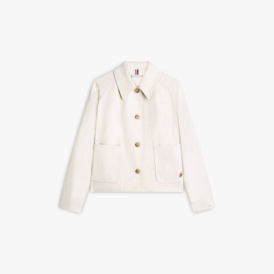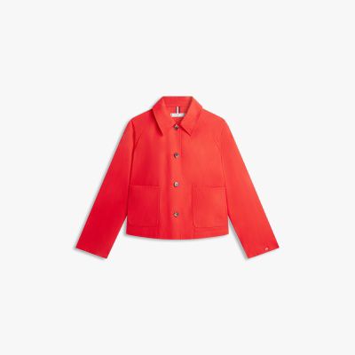 Cette veste à col possède une allure élégante grâce à sa fermeture à boutons en imitation corne. Elle est confectionnée en sergé de pur coton déperlant.
