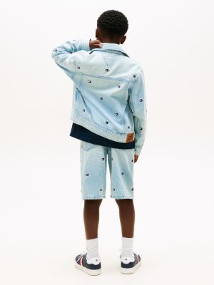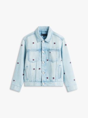 Cette veste trucker en denim dotée d'une coupe décontractée cool ne passera pas inaperçue. Son motif drapeau ondulé brodé accroche le regard.