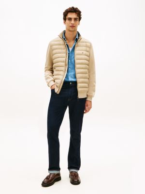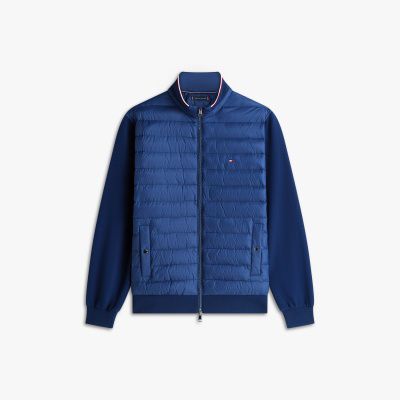 Cette veste zippée présente une partie avant matelassé et un dos et des manches en maille technique. Elle se démarque par son style unique et son liseré emblématique.
