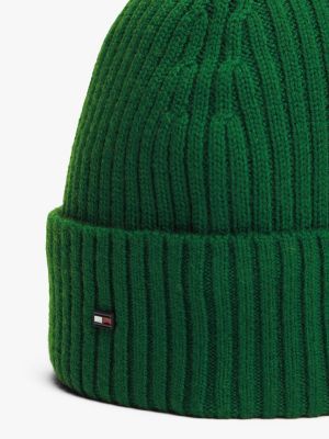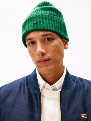 Il berretto in maglia a coste, realizzato in pura lana, è completato dal risvolto con l'inconfondibile bandierina smaltata.