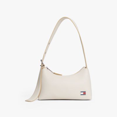 Completa i tuoi look con la sofisticata borsa a spalla, contraddistinta dalla finitura liscia e dall'elegante placchetta con logo Tommy.