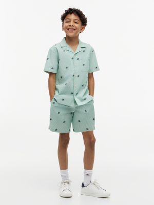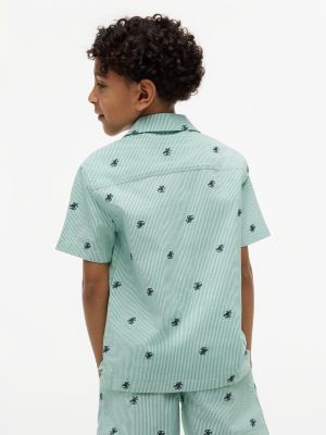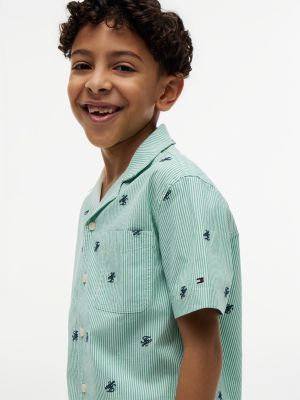 Immergiti nell'atmosfera vacanziera grazie alla camicia a maniche corte con colletto cubano, impreziosita dal motivo a righe Ithaca all over e dal logo ricamato in stile heritage.