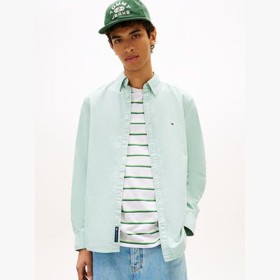 La camicia in cotone Oxford, completata dalla bandierina ricamata, si abbina alla perfezione sia con gli outfit da tempo libero che con gli outfit da ufficio.