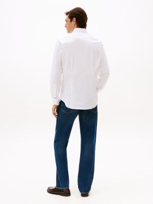La camicia aderente, realizzata in tessuto con tecnologia Flex, dona un tocco di raffinatezza ai tuoi outfit del tempo libero senza rinunciare al comfort.