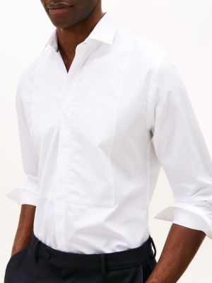 La camicia stile smoking in puro cotone, con colletto ampio e abbottonatura nascosta, è un must have per i look delle occasioni speciali.