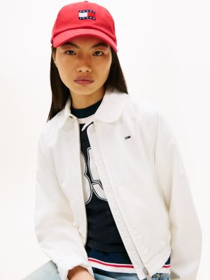 La bandierina ondulata ricamata sul davanti del cappello da baseball in puro cotone è un'originale rivisitazione dell'iconografia Tommy Hilfiger.