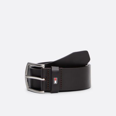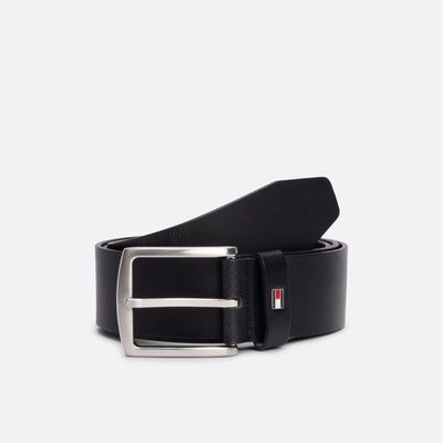 La pelle morbidissima si combina alla robusta fibbia in metallo spazzolato nella cintura dalle linee pulite con bandierina Tommy Hilfiger sul passante.