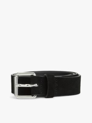 La cintura in morbida pelle scamosciata è impreziosita dal raffinato logo in corsivo in metallo sulla cinghia, per una finitura sofisticata.