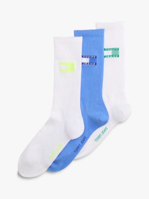 I calzini con la comoda cucitura piatta in punta, impreziositi dal distintivo Tommy fluo, sono proposti nella confezione regalo da tre paia.