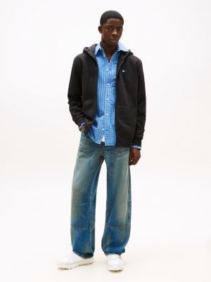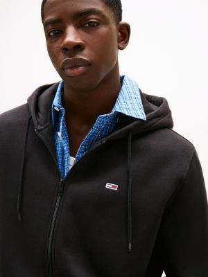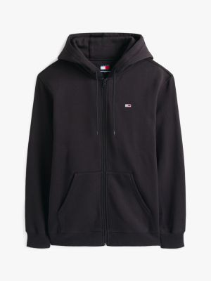 Completa i tuoi outfit casual indossando la morbida felpa in tessuto spazzolato, completa di cappuccio, zip integrale e tasca a marsupio aperta.