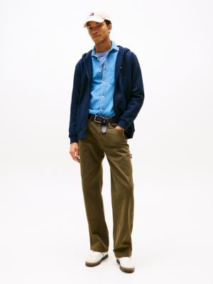 Completa i tuoi outfit casual indossando la morbida felpa in tessuto spazzolato, completa di cappuccio, zip integrale e tasca a marsupio aperta.