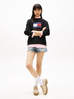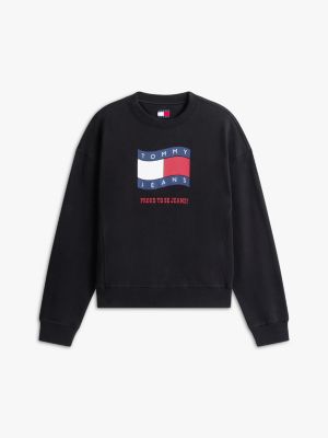 La felpa squadrata in spugna di cotone, ravvivata dall'originale bandiera ondulata, aggiunge una nota di stile urban ai tuoi outfit di tutti i giorni.