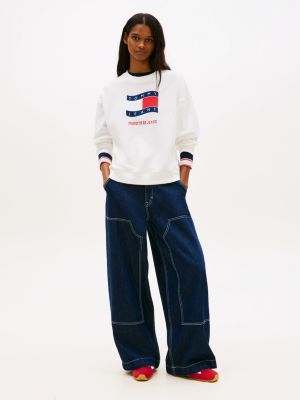 La felpa squadrata in spugna di cotone, ravvivata dall'originale bandiera ondulata, aggiunge una nota di stile urban ai tuoi outfit di tutti i giorni.