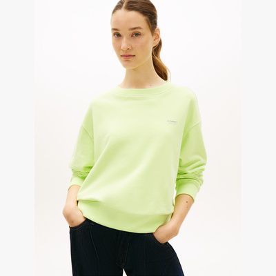 La felpa athleisure relaxed fit, realizzata in spugna di puro cotone con finitura morbida, è decorata all'esterno dall'intramontabile branding metallizzato.