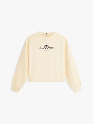 Aggiungi un tocco college ai tuoi look casual con la felpa in morbida spugna di puro cotone, decorata dall'originale stemma ricamato sul petto.