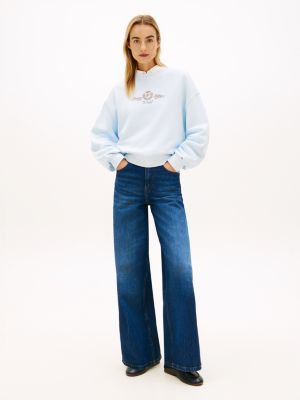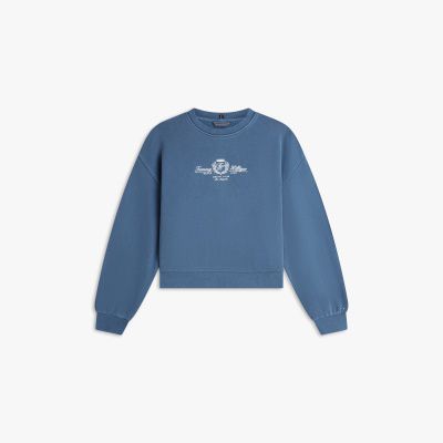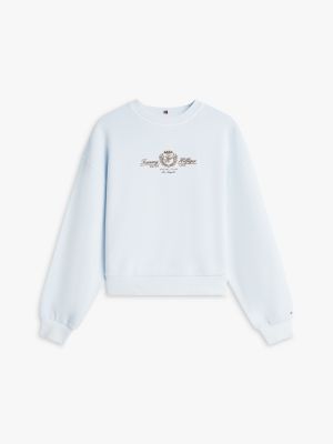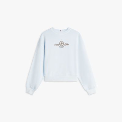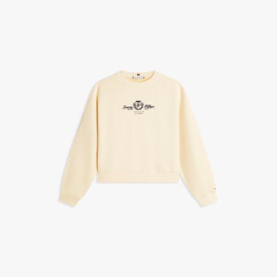 Aggiungi un tocco college ai tuoi look casual con la felpa in morbida spugna di puro cotone, decorata dall'originale stemma ricamato sul petto.