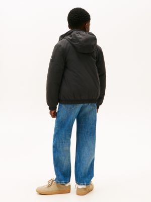 Il giubbino imbottito, con cappuccio ripiegabile e polsini elastici, è perfetto per affrontare il tragitto da casa a scuola anche nelle giornate più fredde.