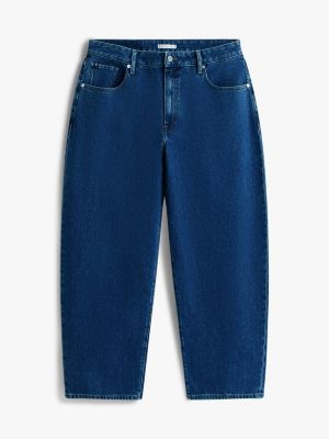 Esalta la figura grazie alla vita alta e al taglio barrel dei jeans affusolati, perfetti per creare un look contemporaneo e originale.