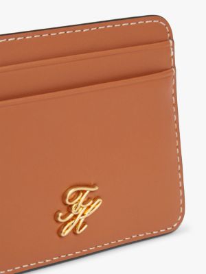 Il porta carte di credito in pelle è una scelta pratica e raffinata, grazie alla placchetta con logo in corsivo sul davanti che aggiunge un tocco esclusivo.