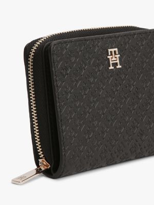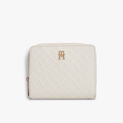 Il portafoglio compatto è arricchito dai monogrammi TH impressi all over e dalle scintillanti parti metalliche, per un raffinato effetto tattile.