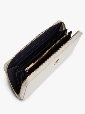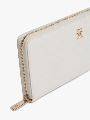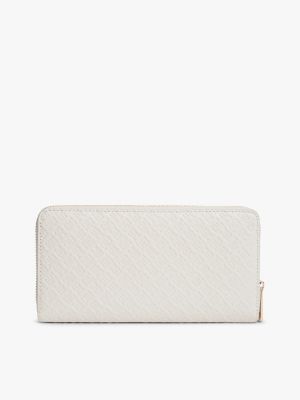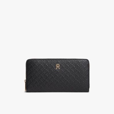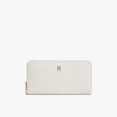 Il motivo con monogrammi TH in rilievo all over aggiunge una nota distintiva al portafoglio con zip, dotato di numerosi scomparti e fessure.