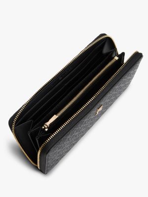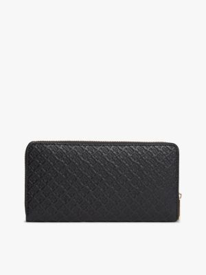 Il motivo con monogrammi TH in rilievo all over aggiunge una nota distintiva al portafoglio con zip, dotato di numerosi scomparti e fessure.