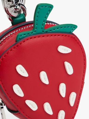 Il portamonete a forma di fragola, con pratico anello portachiavi, è un accessorio vivace e originale che non può mancare nella tua collezione.