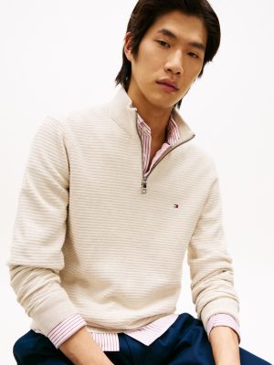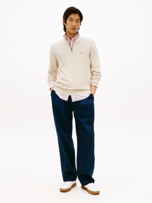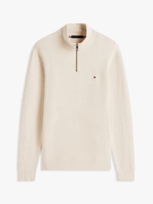 Proteggiti dal freddo grazie al pullover in puro cotone pettinato, realizzato con classico collo a lupetto e mezza zip.