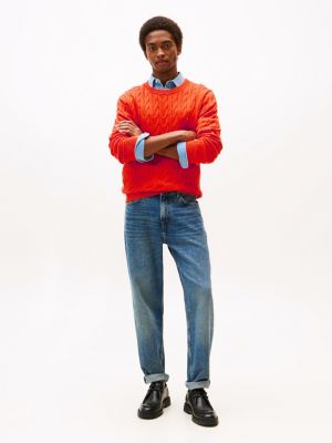 L'intramontabile motivo a maglia intrecciata aggiunge un tocco classico al versatile pullover in puro cotone pettinato, completato dalla bandierina ricamata sul petto.