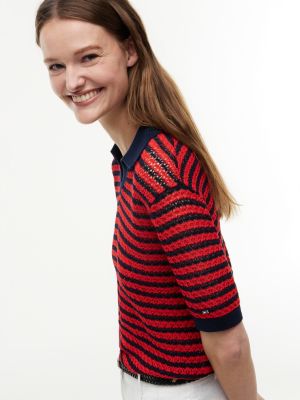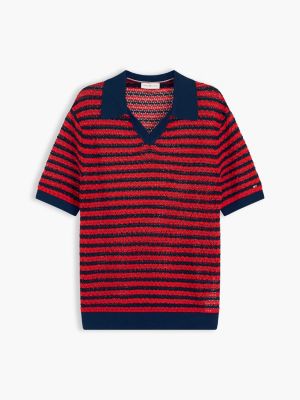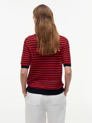 Rinnova il tuo guardaroba di stagione con la polo a maniche corte dalla vestibilità rilassata, caratterizzata dalla scollatura a V e da un raffinato motivo pointelle.