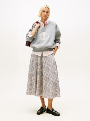 Pantaloni larghi in misto lana a quadri